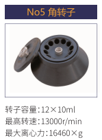 No5 | 角轉子 | 12x10ml | 13000 r/min | 16460xg |